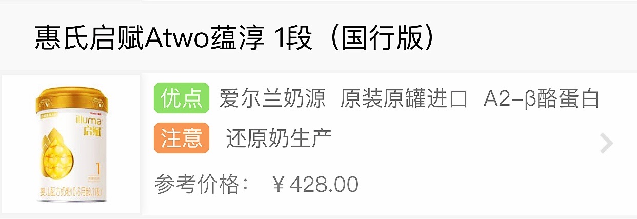 奶源这块,启赋蕴淳采用爱尔兰奶源,爱尔兰奶源是世界三大优质奶源地之一,而且1段使用了A2-β酪蛋白,A2-β酪蛋白是母乳的酪蛋白类型,相比其他奶粉使用的A1型酪蛋白,A2-β酪蛋白在吸收度、亲和度方面都更加友好。但比较可惜的是,启赋蕴淳1段的奶基是大包粉兑水而成的还原奶,还原奶的加工工序比较繁琐,奶粉受到二次污染的几率较高,营养素的流失也比较多。